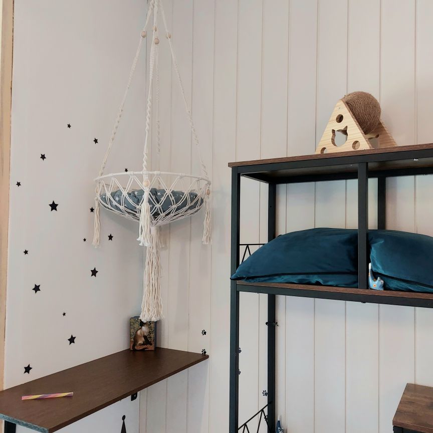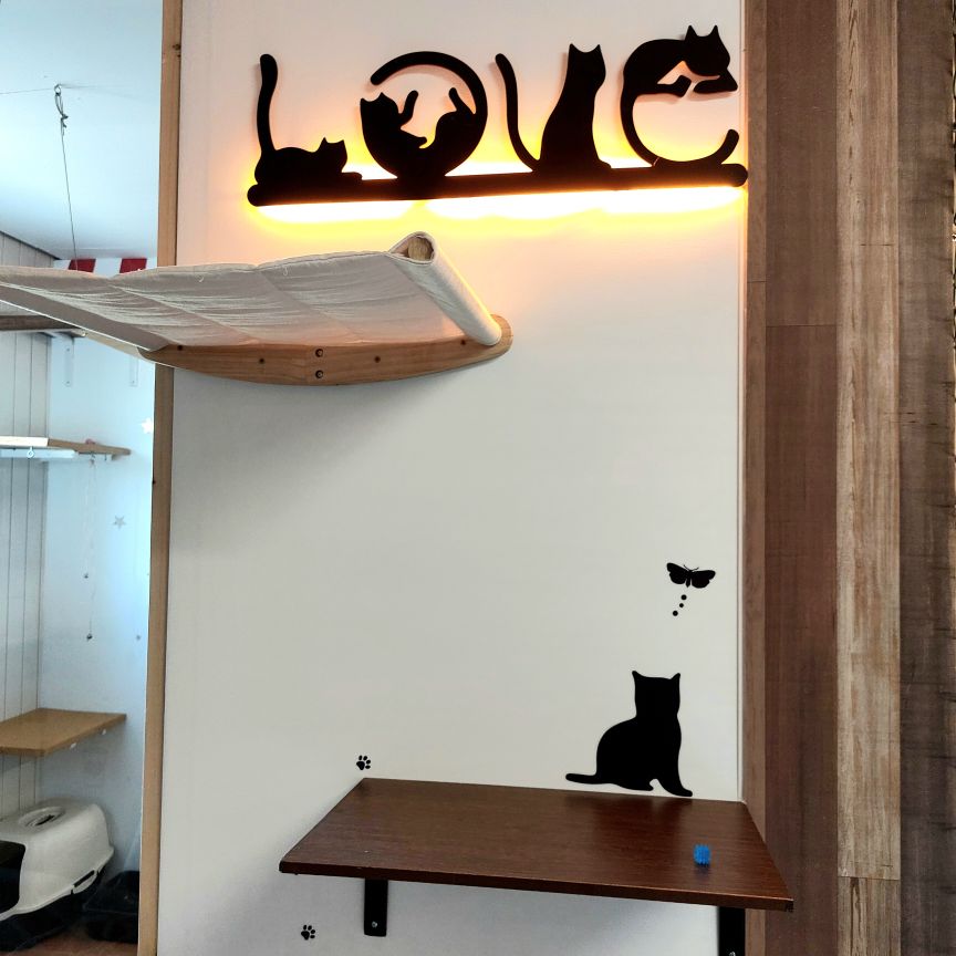 Dans ce petit havre de douceur, chaque chat est invité à se blottir et à savourer des moments de tendresse. Aménagé avec des coussins moelleux, des plaids tout doux et des espaces intimes, le « Petit coin câlins » est l’endroit idéal pour les félins en quête de calme et de réconfort. Ici, la sérénité règne, et les caresses sont au rendez-vous pour apaiser