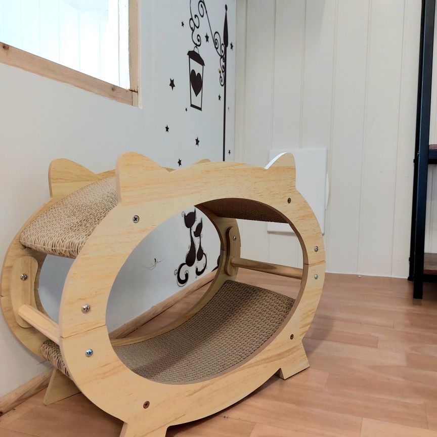 gamelles (eau, nourriture)griffoiresnid douillets/coussins/plaidesbacs à litièreslitières pellets boisjouetsarbres à chats/ étagères d'explorationsLes équipements extérieurs