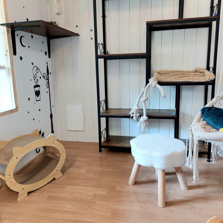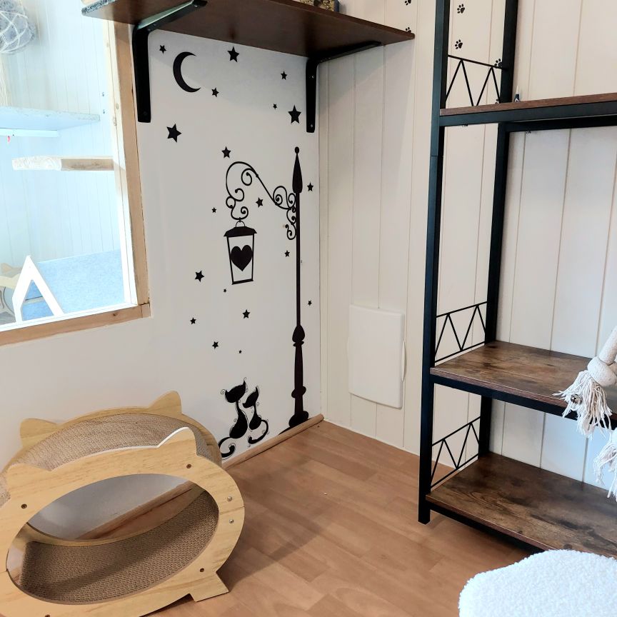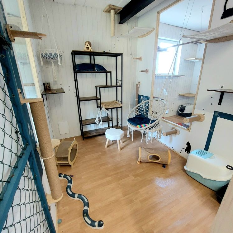Dans ce petit havre de douceur, chaque chat est invité à se blottir et à savourer des moments de tendresse. Aménagé avec des coussins moelleux, des plaids tout doux et des espaces intimes, le « Petit coin câlins » est l’endroit idéal pour les félins en quête de calme et de réconfort. Ici, la sérénité règne, et les caresses sont au rendez-vous pour apaiser
