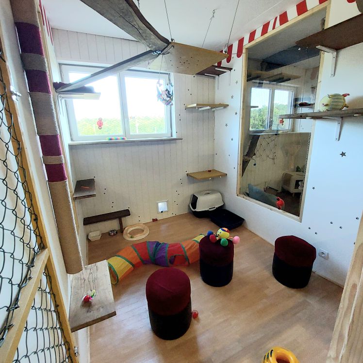 Entrez sous le chapiteau de « Chat Pito », un parc où l’amusement et la magie du cirque prennent vie pour vos félins. Entre les agrès à escalader, les balles à chasser et les cachettes colorées, chaque chat devient un véritable artiste en herbe, prêt à jouer les acrobates ou les dompteurs de peluches. Un espace joyeux et festif où l’énergie et la curiosité règnent en maîtres !